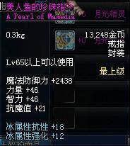 Lv55以上可以使用 魔法防御力+2075 智力+18 魔法攻击时,有6%的几率使自身增加9%的智力 持续30秒 (法系神器戒指之一,高几率触发,而且是魔攻触发,拉罗是物攻触发)