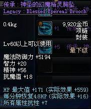 Lv60以上可以使用 传承:神圣的幻魔精灵胸坠 传承:神圣的幻魔精灵手镯 传承:神圣的幻魔精灵戒指 每分钟恢复33MP(实际效果+138) 攻击速度+3.5% 移动速度+3.5% 施放速度+6% 暗属性抗性+12 回避率+2.5% 命中率+1%