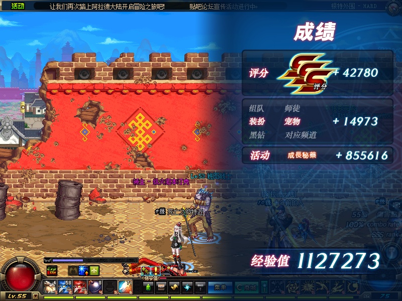 MMP,明明是一个级别,赵四各种都超过我很多,所以昨天他在天界,我在阿拉德大陆单刷。昨晚跟亲戚吃饭,多喝了点酒,一觉睡到半夜。冲到55级,到了天界,发现昨天我说的人偶——45级的死亡之纳特亚 ,依然给力,起码有这个人偶,我能通关根特王者,最高一次是100多万的经验。喋喋不休的宇郭也能陪我过一个冒险。到了5点,我觉得手腕有些僵硬了