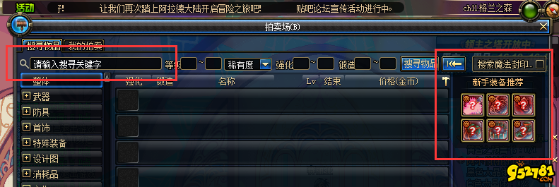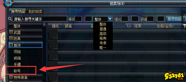 按职业和装备类型查找不必细说,需要注意称号属于首饰一栏,但魔盒开出的意志类称号和设计图无法上架拍卖行;装备品级 整体 指所有类型,唯一 指粉色装备,玩家可先到装备辞典了解各装备属性再选择购买装备。